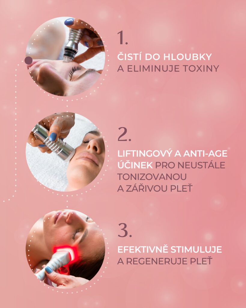 Jedná se o neinvazivní péči pro všechny věkové kategorie. Ideální pro dosažení zářivé a hladké pokožky již od prvního sezení.